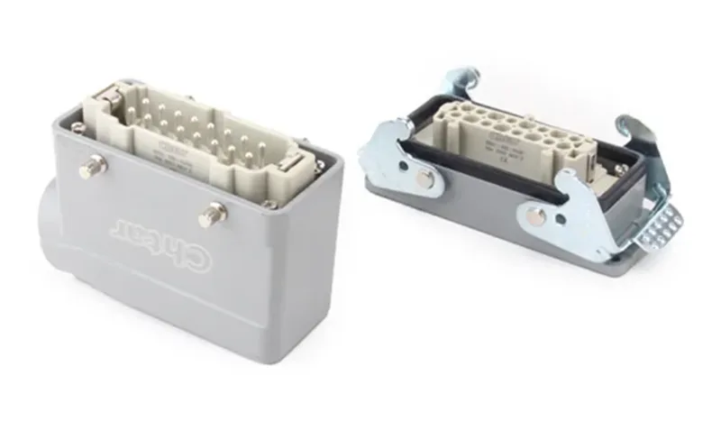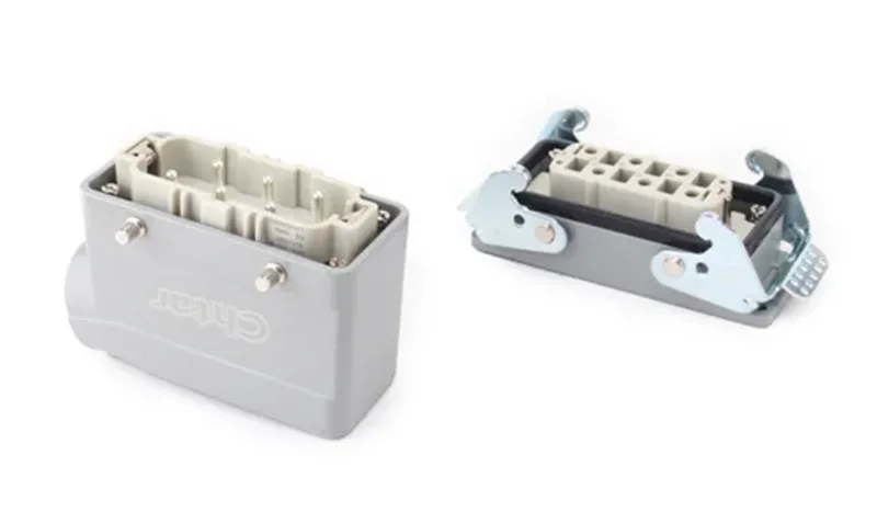 CHTARpeut fournir une gamme complète de connecteurs robustes pour boîtiers. Il existe des boîtiers adaptés aux connecteurs robustes des séries HA, HE, HD, HEE et HDD, etc. Ils fonctionnent également avec différentes broches, telles que 3, 4, 5, 6, 10, 16, 24, 32 et 48, etc. L'usine peut fournir différentes connexions de direction de fil.
